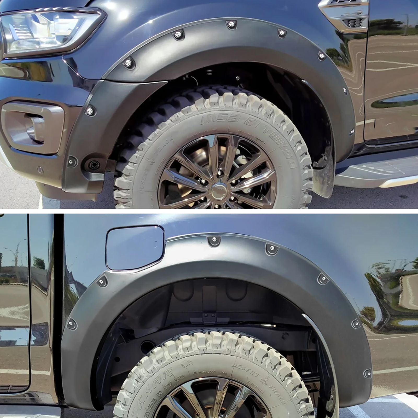 Skärmbreddare set Ranger T8 2019-2022 modell. Abs-plast set med montering tillbehör. Matt svart. Utvädigt 45mm / sida. Leveranstiden 1-2 veckan om inte i lager.