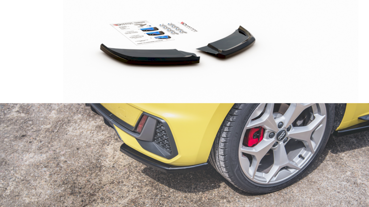 Rearbumper extensions for audi A1 S-line 2018-. Black ABS plastic with mounting hardware included.